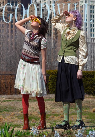 A project I did in 2023, "Goodwill as Gucci" is a satirical recreation of high fashion magazines. Using the cover style of Vogue and other major magazines, I wanted to embody the style of the brand Gucci with thrifted clothing. With this humorous photoshoot, I wanted to build up the use of second hand clothing and call out the fast fashion and high fashion industries. I created these covers with Photoshop and Procreate.